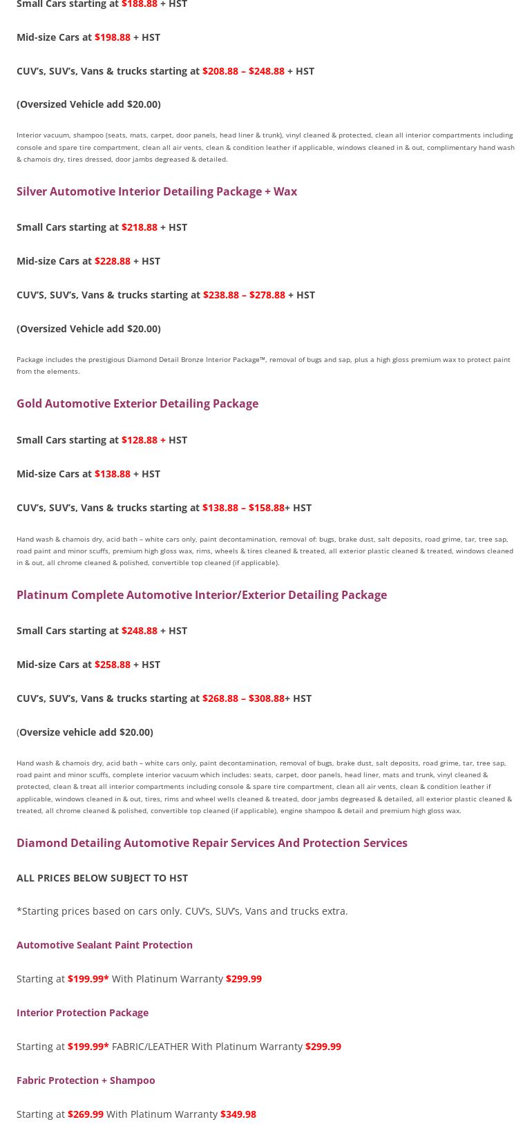 Hands down, no questions, the BEST detailing my car has ever had! I go back every Spring for their diamond package. If you love your vehicle, give it the Diamond Detailing treatment.