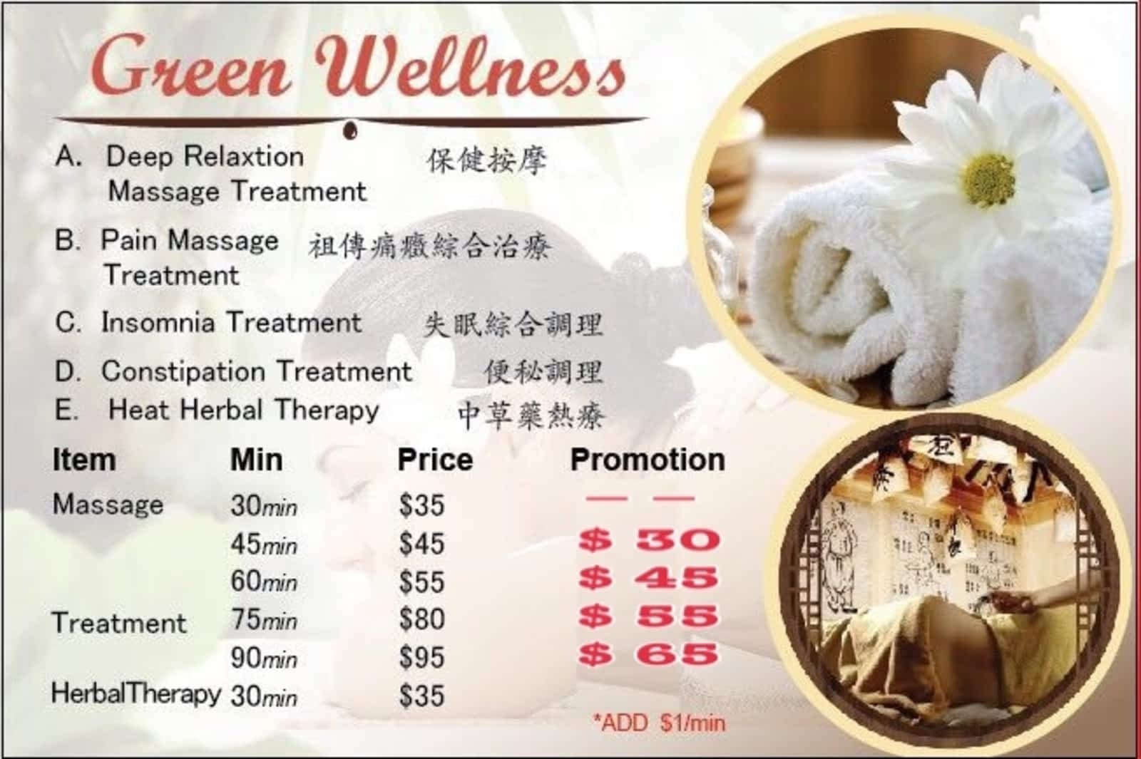 Excellent place for a massage in east Markham. If you're from the area, I'd definitely give it a visit or two. They have only a couple of ladies working but they're all very knowledgeable and good at what they do. They are VERY accommodating here. Extreme to the point where it may be the kindest service you receive at a massage parlour. No showers but really, who tf showers when they go get a massage? This isn't a spa. It's a basic place to get some pain relieved. They offer deep tissue, therapeutic, relaxation etc. Just let them know what you're aiming for. I think the head masseuse/owner Mimi is very knowledgeable. She has a lot of training... read full review