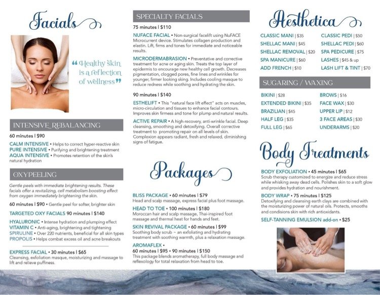 Hidden gem.This spa is a bright beautiful comfortable and relaxing space. The staff take the time to discuss your specific goals/needs. There are so many unique and custom treatments. They are all knowledgeable and up to date with the services they offer. They have some nice gift items such as natural soaps and elite skin care items. Check them out! Now my entire family comes here!
