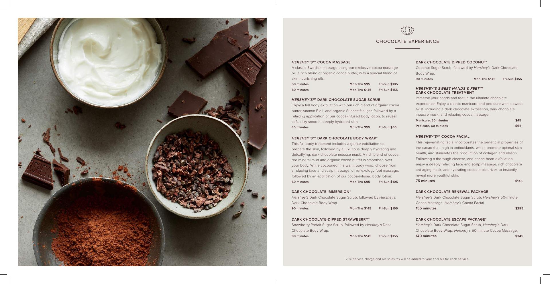 The cocoa in the relaxation room really is some of the best I've ever had. My husband and I both had the Dark Chocolate Spa package with scrub, massage, and facial. The scrub was lack luster and I will not do it again. The dry brushing was less than comprehensive and the scrub itself was hardly exfoliating. I have had better scrubs with a nylon mit in Korean bath houses. Save yourself the mess and do your own in the tub or shower at home. The massage and facial were absolutely worth doing though. Next time we go, we will explore some other service to complete our spa day while keeping with the massage and facial. The shower in my room also dripped the entire time... read full review