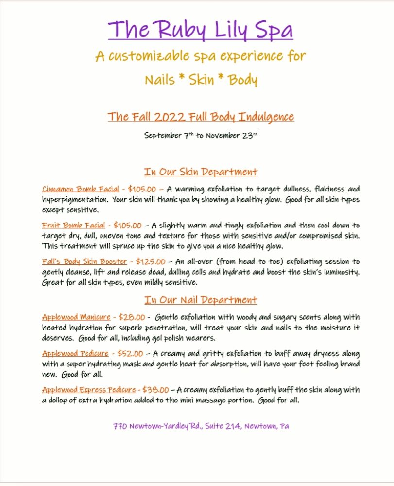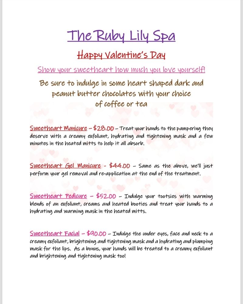 The Ruby Lily Spa is a beautiful, clean, and private salon. It is a wonderful place, and Teena (the owner) is so welcoming. She personalizes the experience and really takes her time with gel manicures and making sure that the nails are healthy and taken care of. I first came with my nails not in the best shape, and she has been wonderful in communicating with me and checking on how everything is going. This is such a pleasant experience. Her facials and body scrubs are also amazing. I look forward to my upcoming appointments! Thank you!