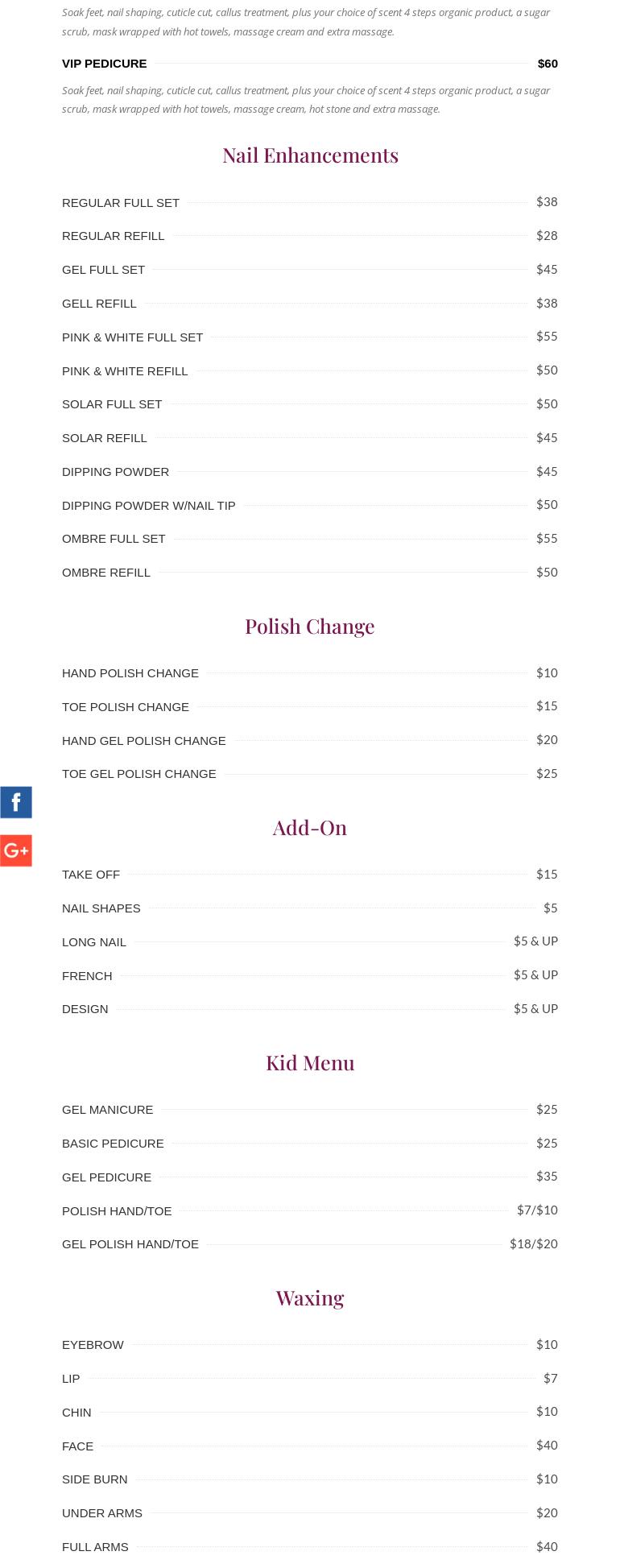 01/24 - I could only write one review so I have to add to my old one. I just went back three weeks after for a refill and took my daughter in law for a full set and my husband for a pedicure. I had a woman who did a blue and white snow-flake theme for the winter holiday. I had asked her name and forgot now. I think it might be Tracey but i think I'm wrong. I'm going to post the picture and I need to know. She also did the red french design and snow-flake on my daughter in law and it was beautiful. I will come every weekday just for her and Kevin. I say that to say I was disappointed because the next day my daughter in laws nails started popping off one at a... read full review