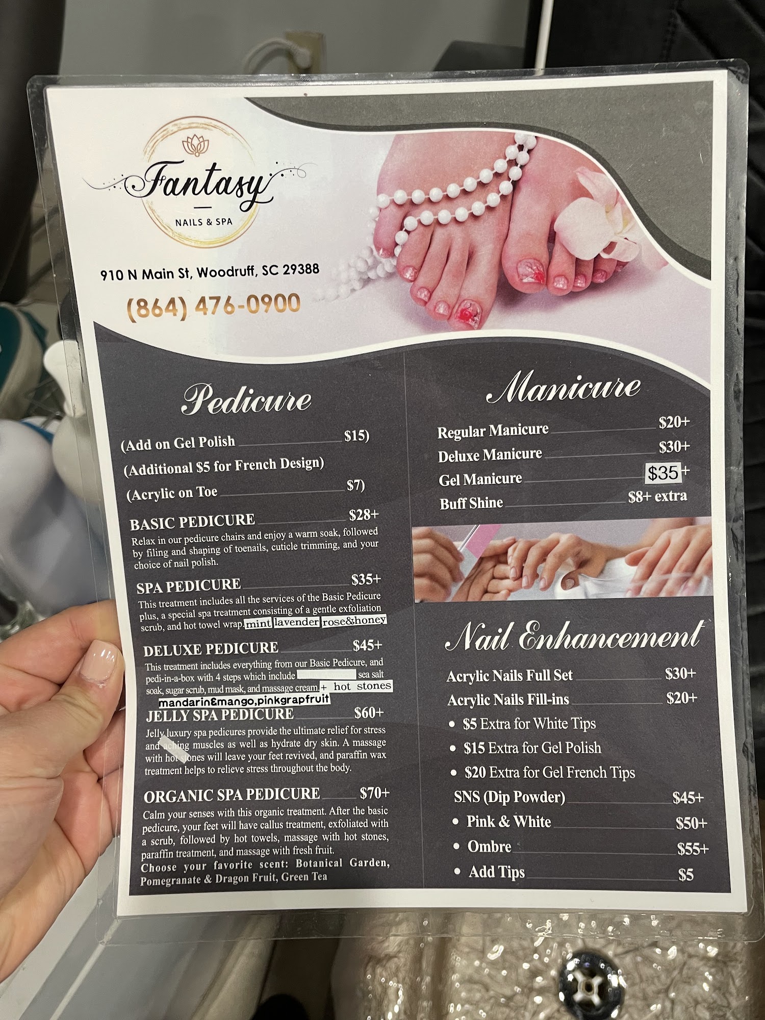 I always have such an amazing experience here at fantasy nails! every staff member is kind and welcoming. I have never had a bad experience. I feel like I’m starting to become a regular. They know you by your first name. Everything about here is great! Amazing job on my nails and great massage pedicures !