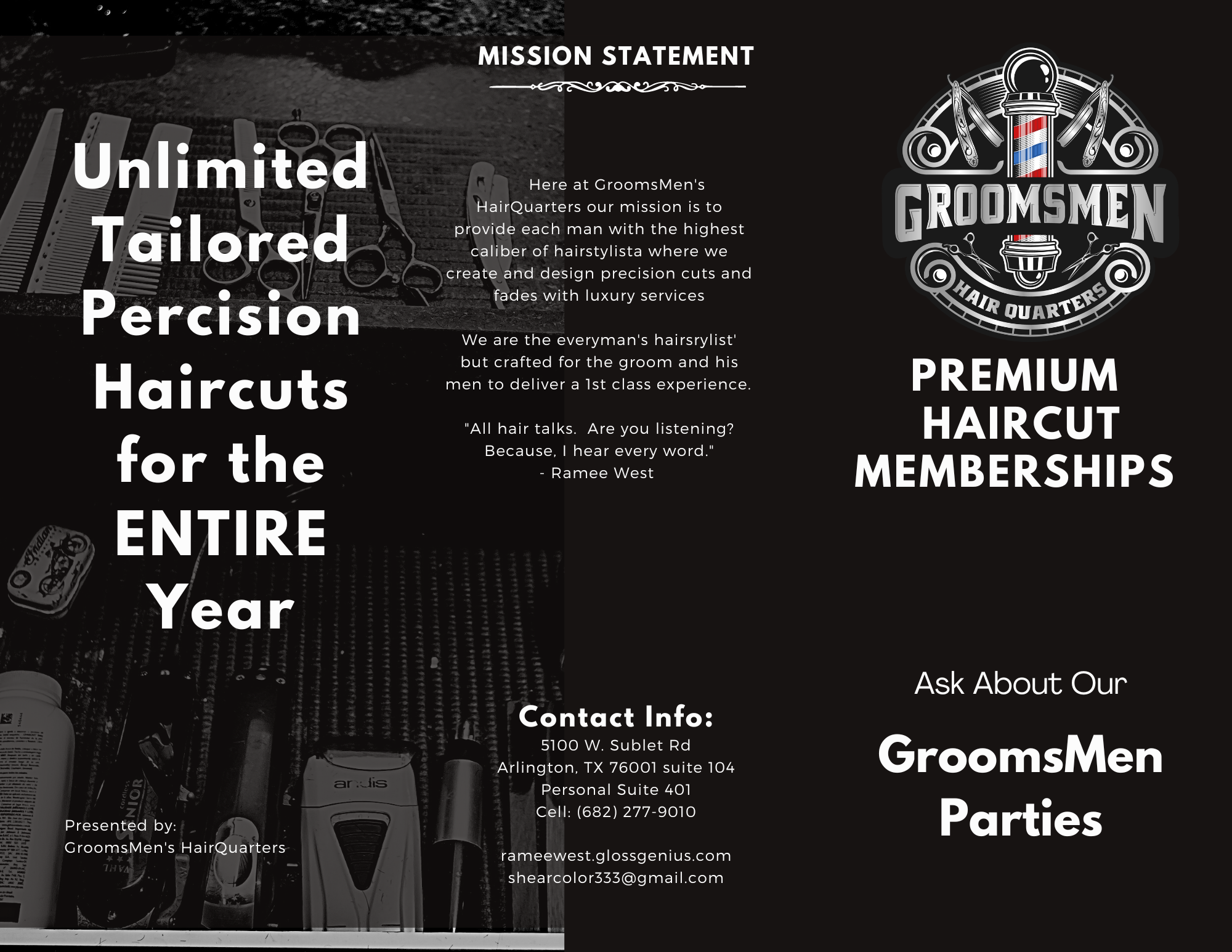 Add your commentGroomsmen Hairquarters/ShearColor
