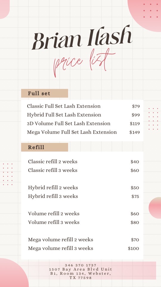 Brian does an amazing job!! I have been to many other lash places before, and my lashes have had the best retention with Brian doing them. He is very gentle and manages to do my refills much faster than anywhere else I’ve had them done. There are so many lash places in the Clear Lake area and he is such a hidden gem!!