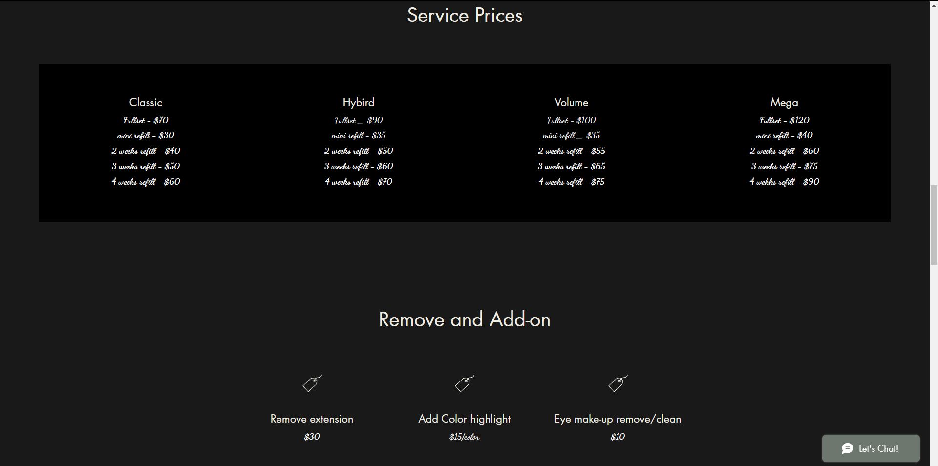 I absolutely love this place! Super clean, super nice and all around wonderful! My lashes always come out great, and he now offers colors! I always recommend this place to others. Super happy with my hint of pink in my new set! ?Service: Eyelash extensions