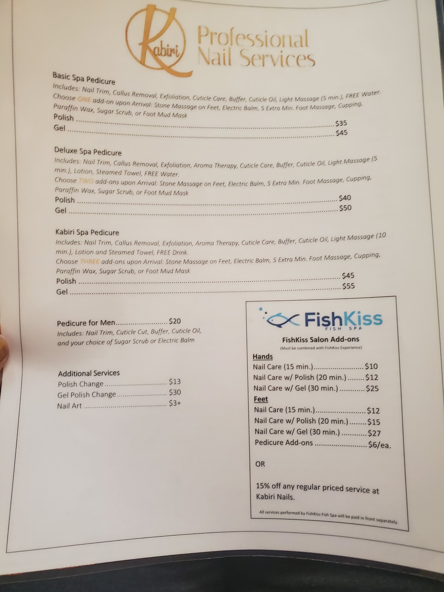 I have been going to Kabiri for almost a year and have absolutely loved my nails each time. The ladies there are always nice to me and do a very good job! Today however when I arrived for my appointment at 12:30 the door to the building was locked! I tried knocking as hard as I could but I don’t think anyone could hear me. I then tried calling and messaging them but I never got a response back. I probably looked like a crazy person trying to get in but after 15 minutes of standing outside in the cold I went back to my car and soon after got a message that my appointment time had passed so I had to reschedule. Fun Fact: The Fish Kiss building doesn’t open till 2 pm... read full review