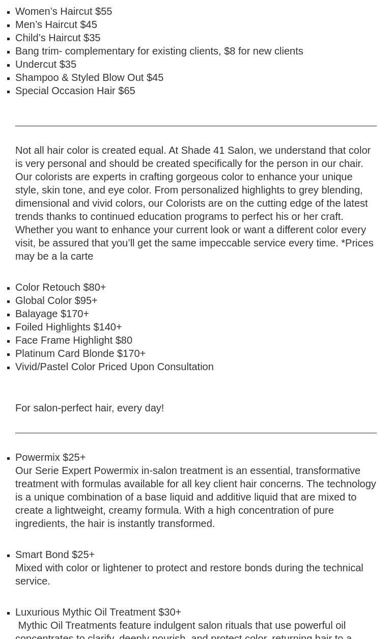 This salon just reopened in August and it’s so beautiful, clean, and inviting. The stylists are all very sweet and talented. I have been getting my hair done by Lydia for years and I followed her from another salon to this one.