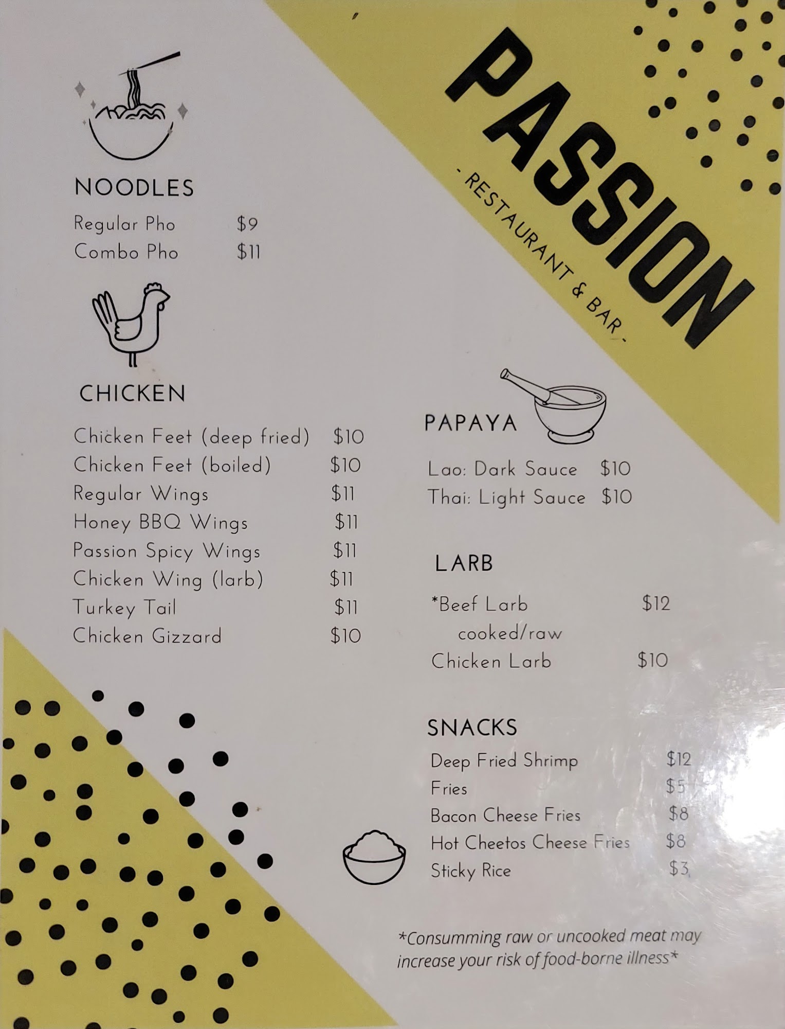I’m new to the area and was looking for a place to grab a late night bite and get out of the house, and Passion did not disappoint. My bartender, Johnny, was great! He did an amazing job of letting me know what to expect with different items on the menu. I enjoyed watching/listening to other patrons do karaoke, and got to try their turkey tails (they are DELICIOUS and just the right amount of spicy ?). They’ve definitely found a regular in me!